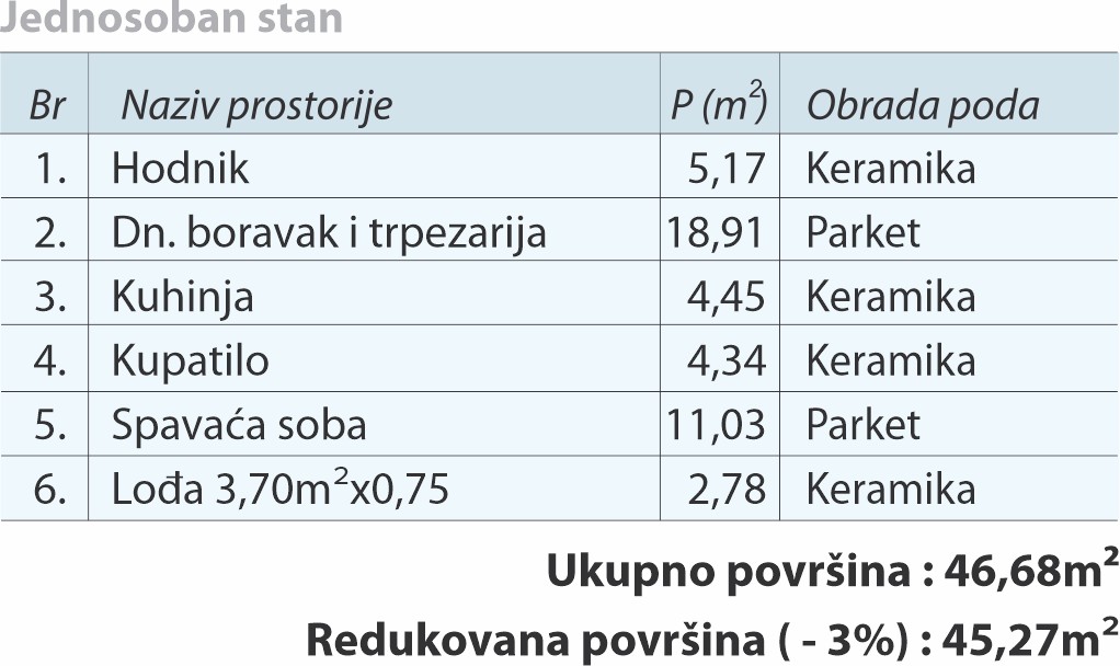 Drugi sprat / stan br. 9 - 46,68 m2