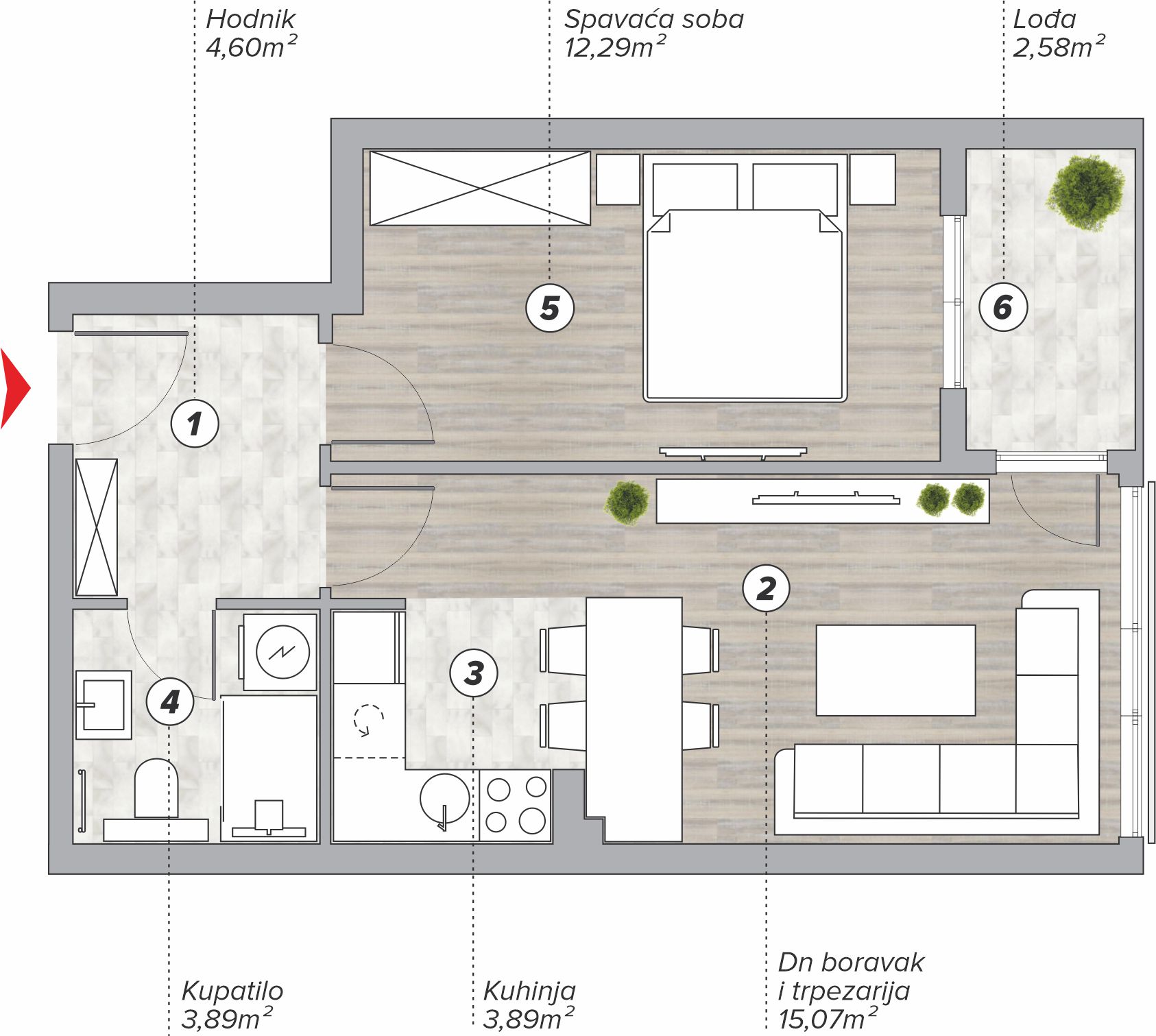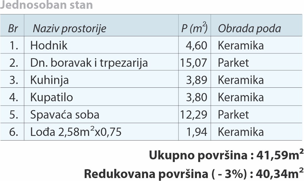 Prvi sprat / stan br. 6 - 41,59 m2